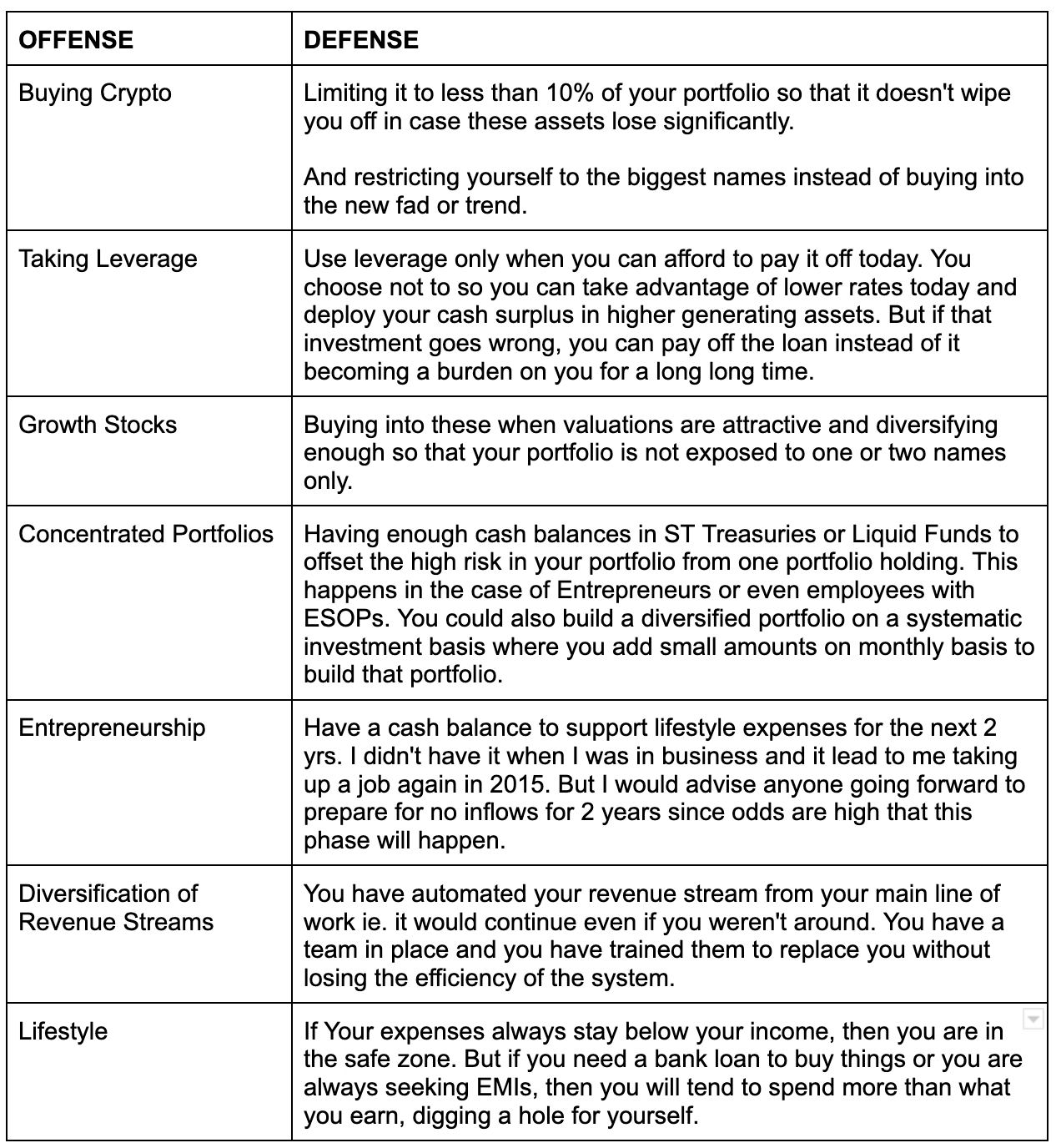 Vijay Mallya leveraged his liquor business to invest in the airline business and lost it all. Boris Becker would have continued with his lifestyle inspite of his professional income drying up. Many investors have been regretting buying LUNA or other Crypto assets because they exposed a huge chunk of their portfolios to these assets. It’s not good news but it’s expected when your defenses are weak.